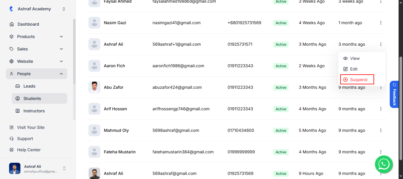 Sometimes you need to temporarily restrict a student’s access without completely removing them. Now you can suspend students when needed. This is useful for situations like payment issues, policy violations, or when you need to pause someone’s access temporarily.