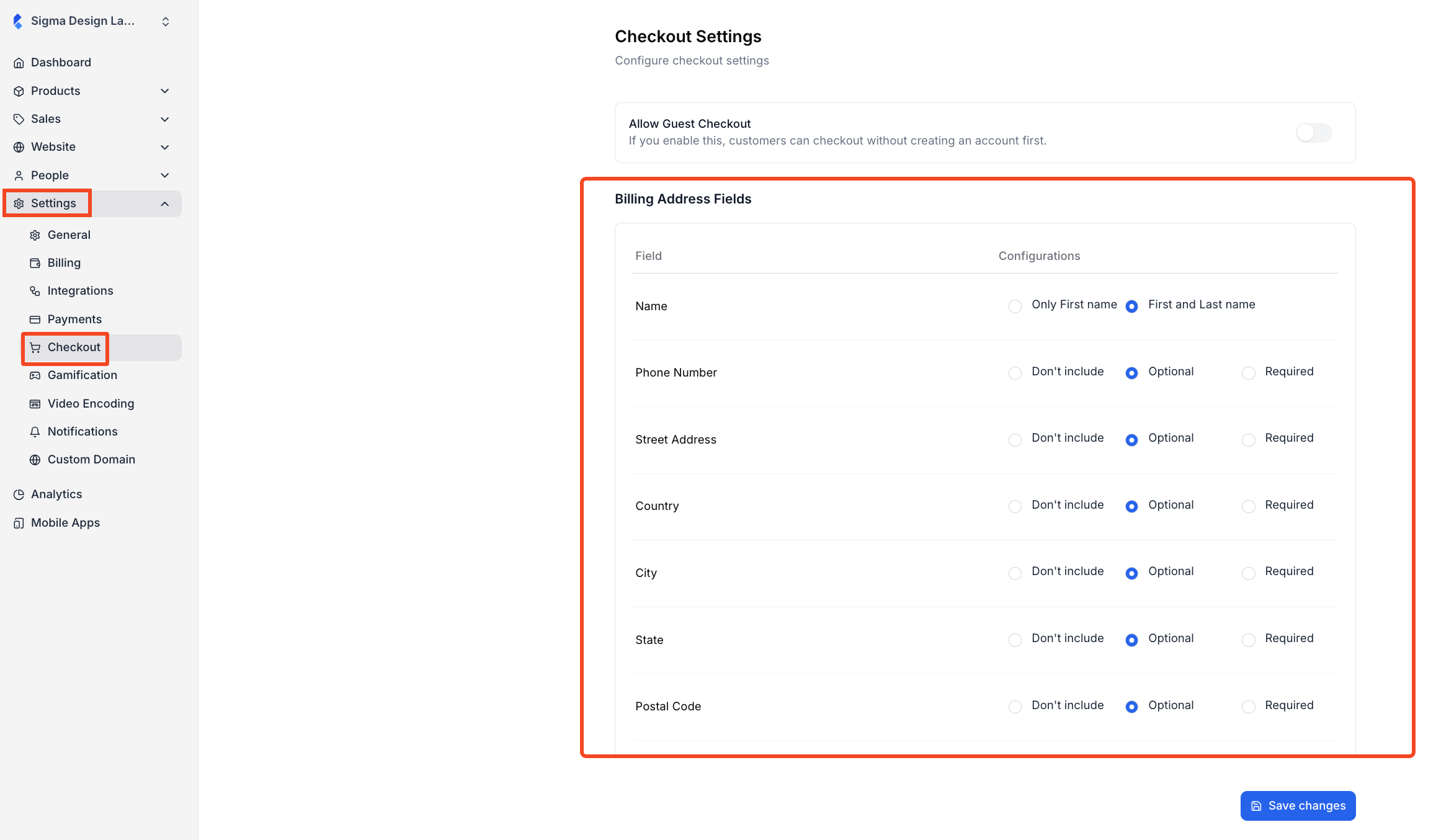 5. In the checkout form customization page, you will also see a toggle button that says “Allow Guest Checkout.” If you toggle this button on, then it will enable the guest checkout. Guest checkout will allow people who are not registered as students to make a purchase without creating a student account.