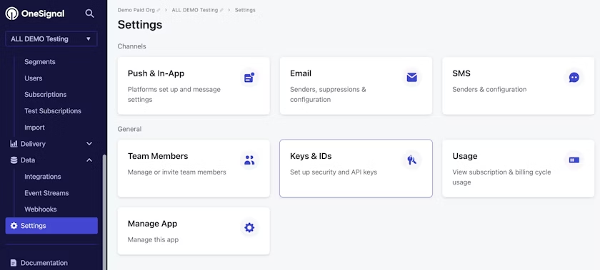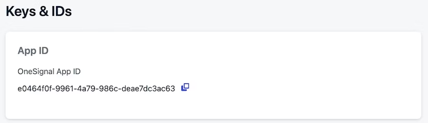 The App ID is a unique public identifier for your OneSignal project, formatted as a UUID v4. It is distinct from your private API keys and is required for: